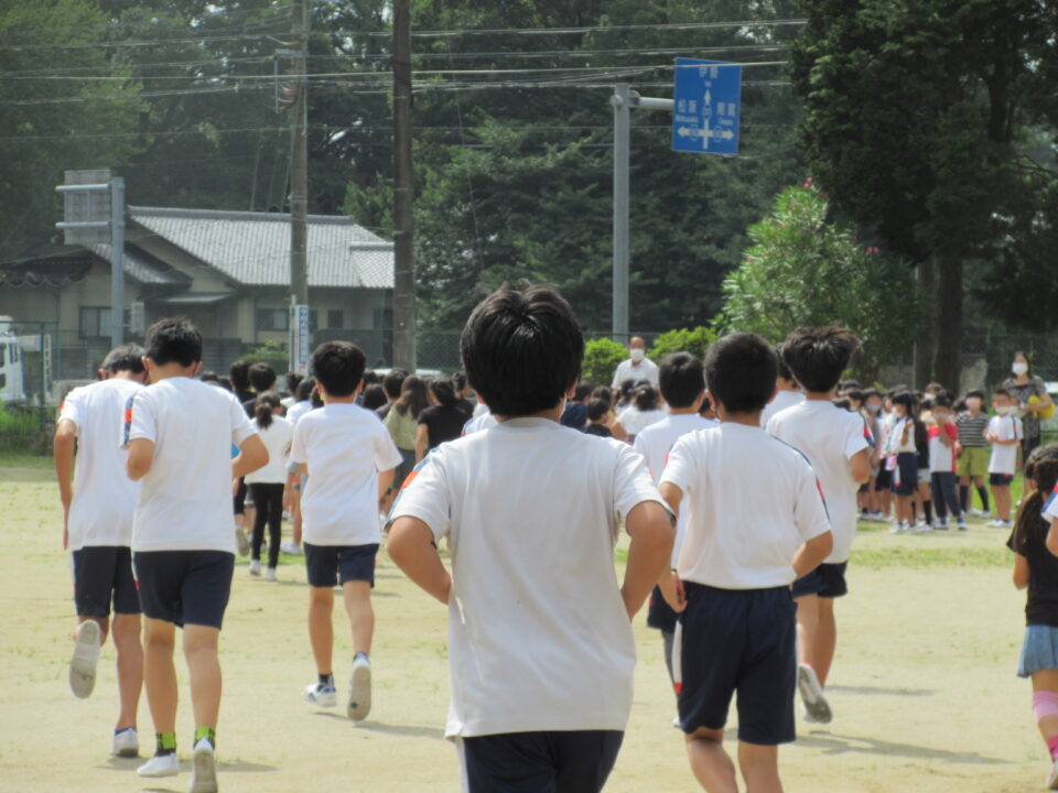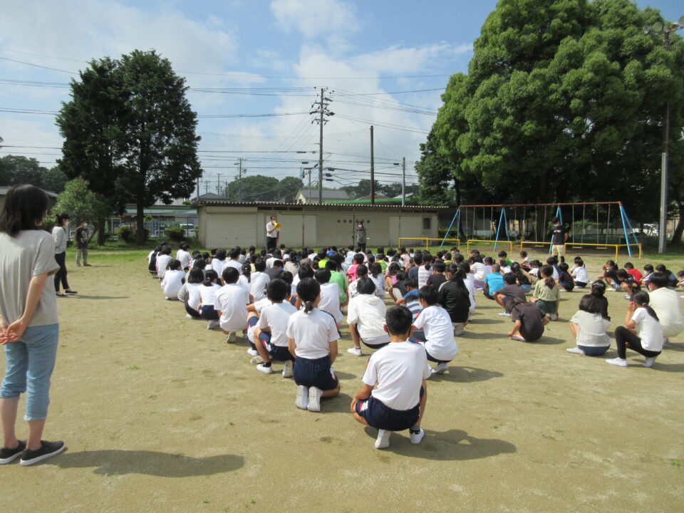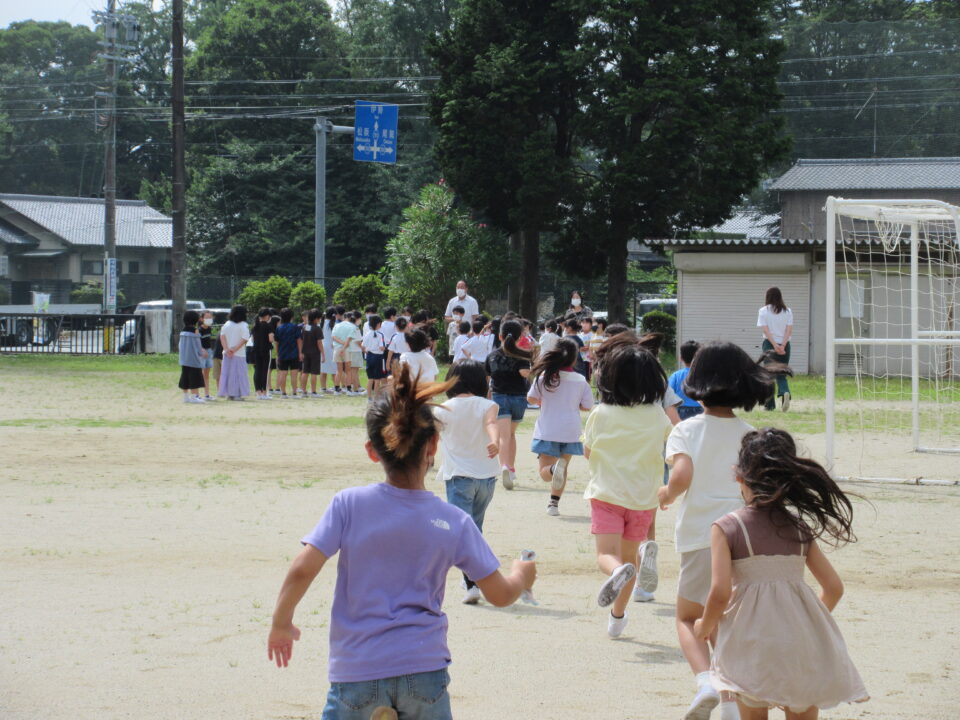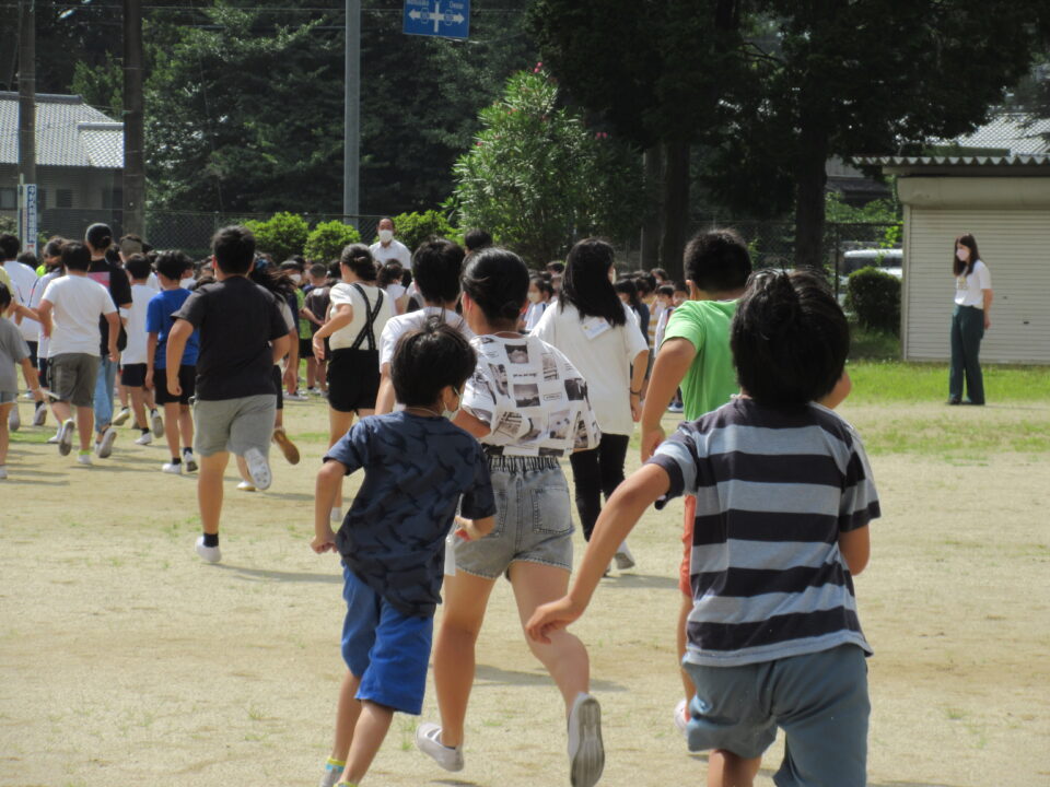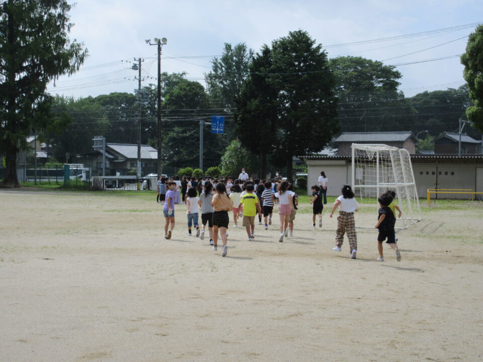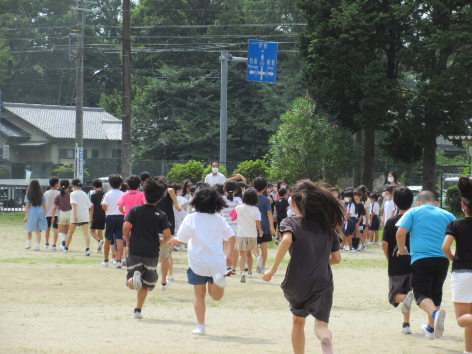 6年生は、すぐに下の階にいる1年生を助けに行きました。1年生もすごいです。6年生が教室に行った時には、1年生はすでに自分たちで避難をしていました。運動場まで来たら、「ここからは走った方がいいよ。」と言う1年生の声が聞こえてきました。また、少し逃げ遅れた子の所へ助けに行った高学年の子もいました。どの学年も落ち着いて素早く避難をしていました。子どもたちは自分たちで考え、自分の命、みんなの命を守る行動をしていました。