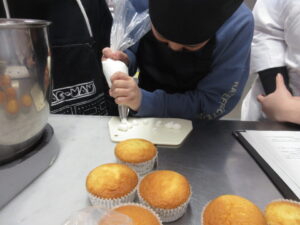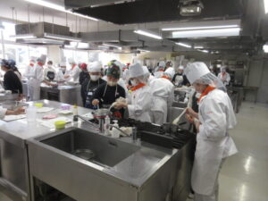 今日は6年生が相可高等学校で調理実習体験をさせていただきました。この体験学習は、キャリア教育の一環として、同じ地域にある相可高等学校さんにお願いをしているものです。