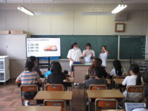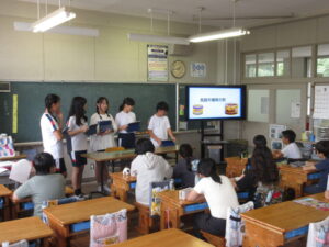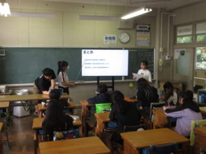 6年生は総合的な学習の時間に、「缶詰」をテーマに学習を進めています。それぞれの探究のテーマごとにグループを組み、いろいろ調べてきました。そして調べたことをわかりやすく伝えるために、タブレットを使ってまとめました。今日はその成果を、5年生に発表しました。