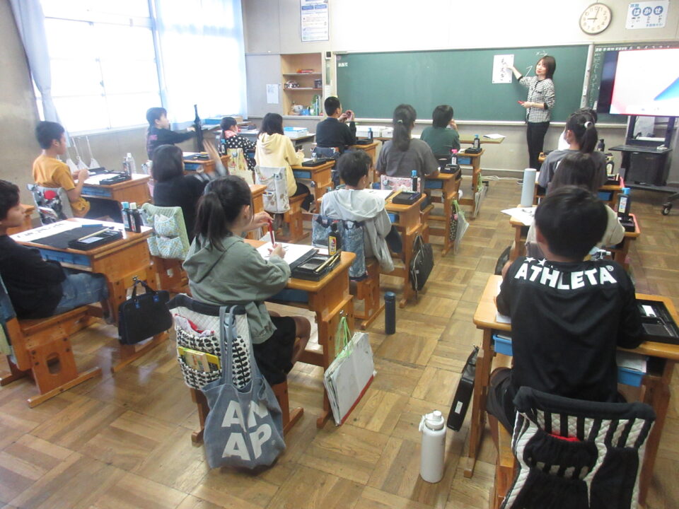 ホーム > 日々の活動の様子 習字 5年2組 5-2で習字(毛筆)をしていました。「もえぎ」という手本ですが、ここで「も」の書き順が「?」の子も何人かいました。大丈夫かな? シェアする Twitter でシェア LINE でシェア Facebook でシェア Pocket に保存 関連投稿 日々の活動の様子 交通安全のぼり旗 日々の活動の様子 4~6年 学習会 2日目 日々の活動の様子 授業の様子 日々の活動の様子 豆まき(カラーボール) 日々の活動の様子 運動会に向けて 日々の活動の様子 松阪市標準学力調査&みえ松阪マラソン 前の投稿 ふれあい訪問2 次の投稿 ふれあい訪問3
