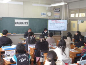 ホーム > 日々の活動の様子 薬物乱用防止教室 6年生 6年生が、松阪警察署の方をお招きし、薬物乱用防止教室を行いました。違法薬物の恐ろしさを分かりやすく教えていただき、違法薬物には絶対に手を出さないこと等、大切なことをたくさん教えていただきました。 シェアする Twitter でシェア はてなブックマークに保存 LINE でシェア Facebook でシェア Pocket に保存 Feedly で購読 関連投稿 日々の活動の様子 チャレンジ記録会 日々の活動の様子 1年生 国語の授業 日々の活動の様子 お楽しみ会 2年 日々の活動の様子 ISG(委員会)活動 日々の活動の様子 オリジナルバッグ 1年・3年 日々の活動の様子 ツバメの参観? 前の投稿 つばな保育園との交流会 1年生 次の投稿 みんなで描いた看板完成!