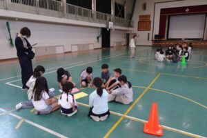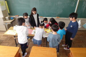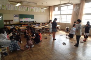 続いて、班ごとに教室に分かれて、自己紹介をしたり、なかよし班遊びをしました。