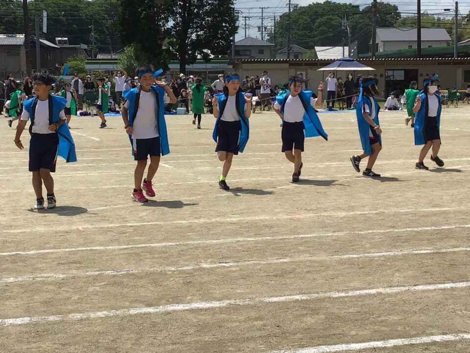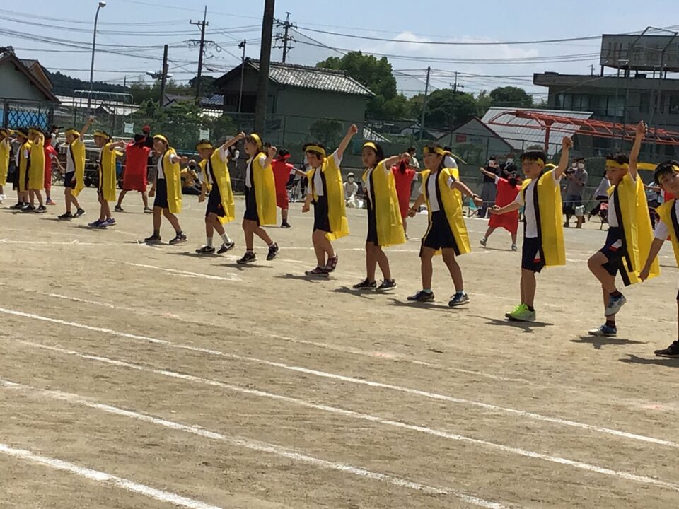 運動会。中学年の「松阪鈴おどり」です。練習では日に日に大きな掛け声が響いていました。4年生が3年生に丁寧に教えていた姿も印象に残っています。