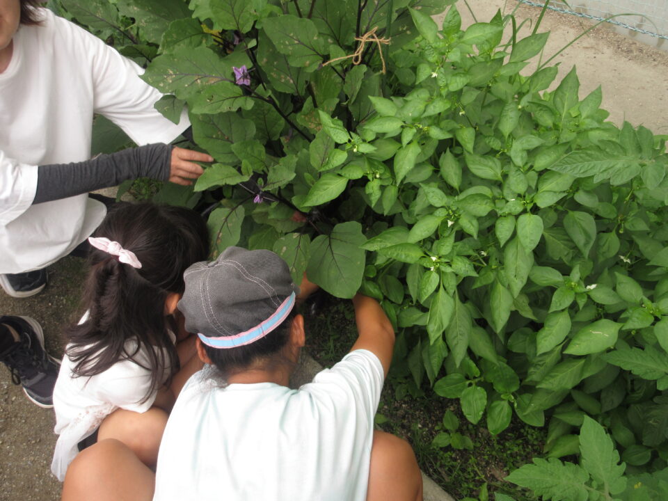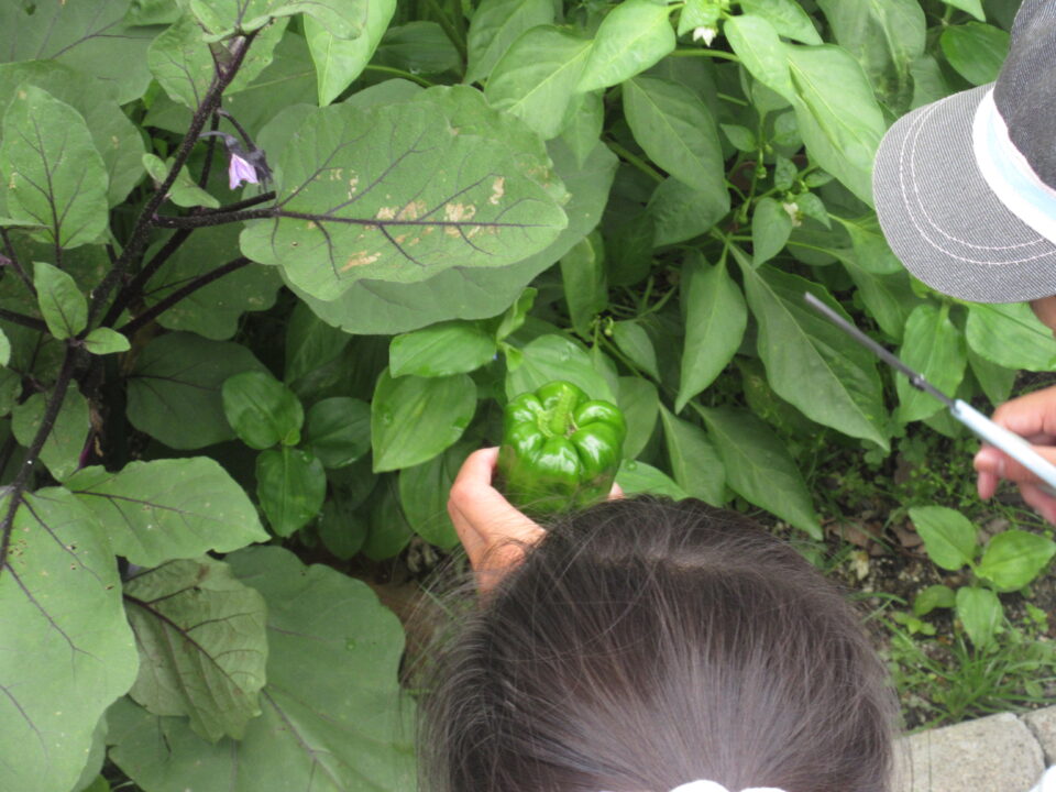 高学年の子たちは低学年の子とグループを組み、協力して収穫しました。その後肥料をやり、次の収穫を待ちます。