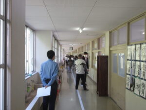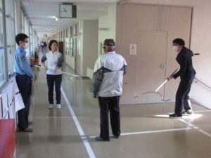 まずは、校舎内に見知らぬ人が入ってきたという想定で訓練を行いました。