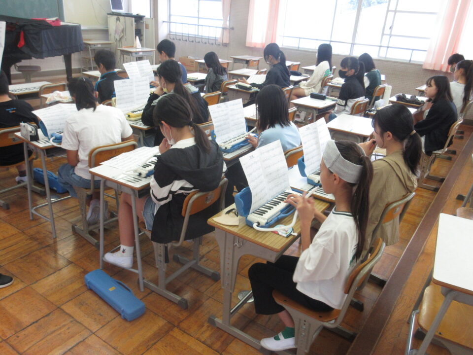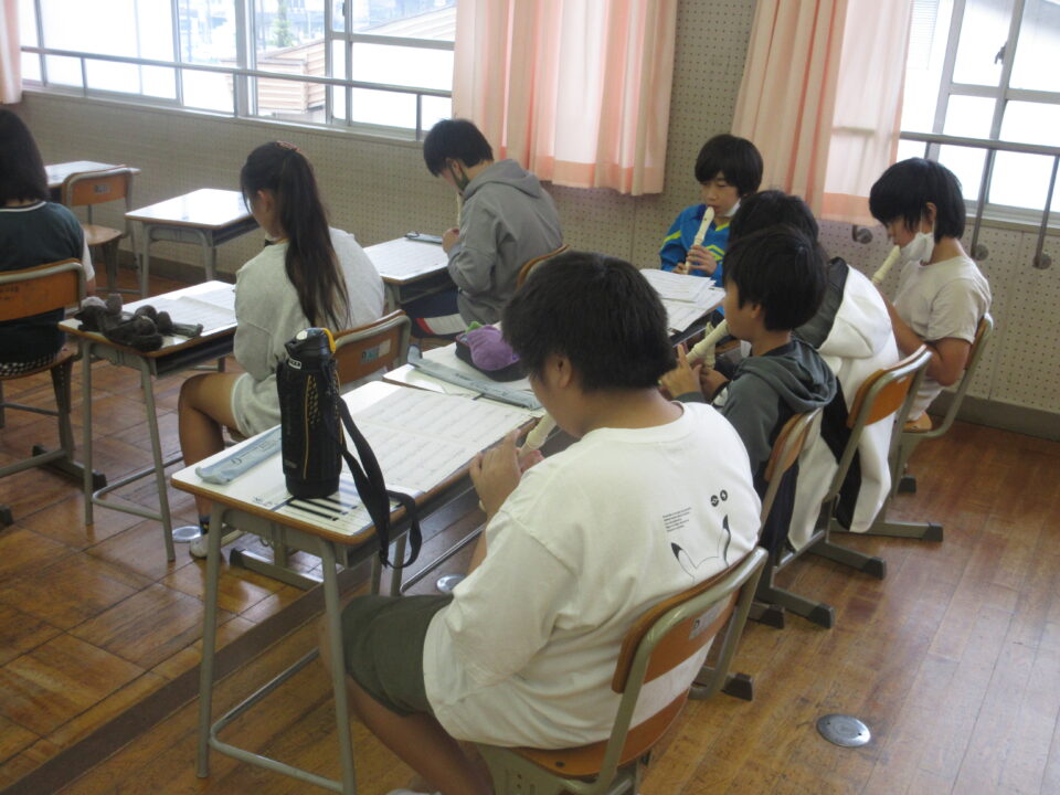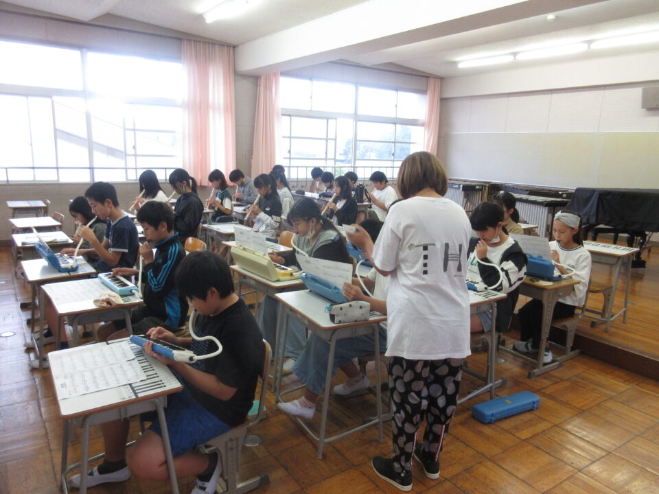 6年生の音楽です。リコーダーと鍵盤ハーモニカで合奏(文化祭の練習)をしていました。パートに分かれて、これからもっと使う楽器も増え、楽器別に分かれながら形になっていくようです。文化祭まで時間がありそうでなさそうなスケジュールですが、しっかり決めるときは決めてくれると思います。
