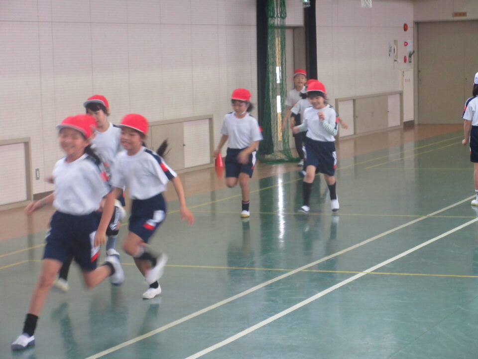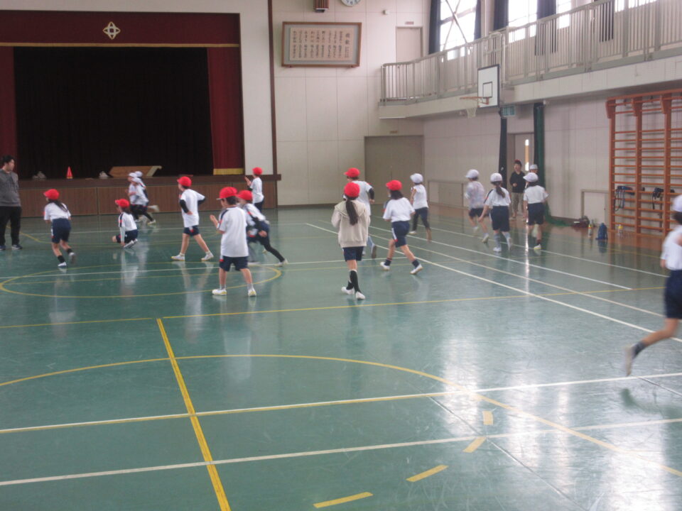 2年生は体育で長距離走の練習をしていました。業間かけ足に向けての練習です。