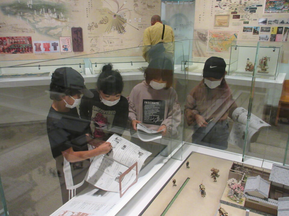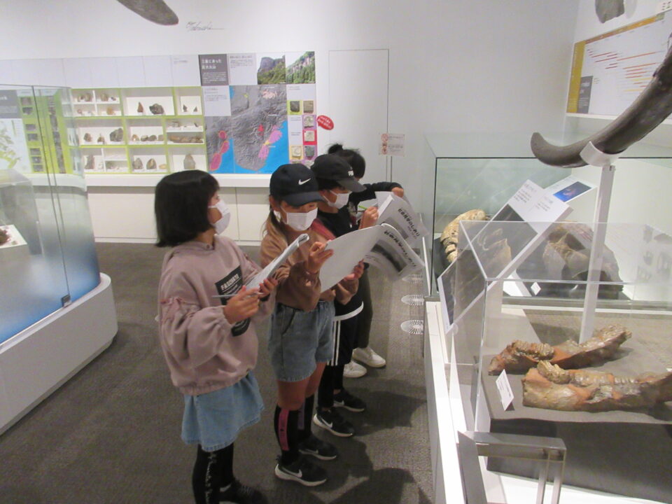 今日は、2年生が社会見学に出かけました。三重県立博物館(ミエム)での様子です。しおりにあるワークシートのなぞ解きにどの班も団結して取り組みました。