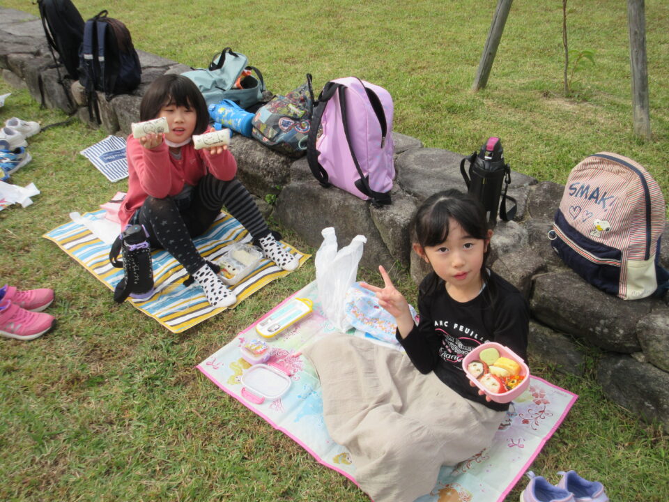 ミエムの庭で、楽しいお弁当タイムです。