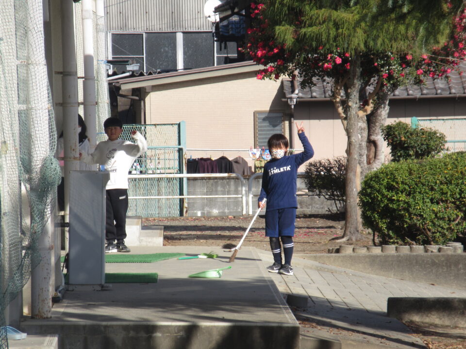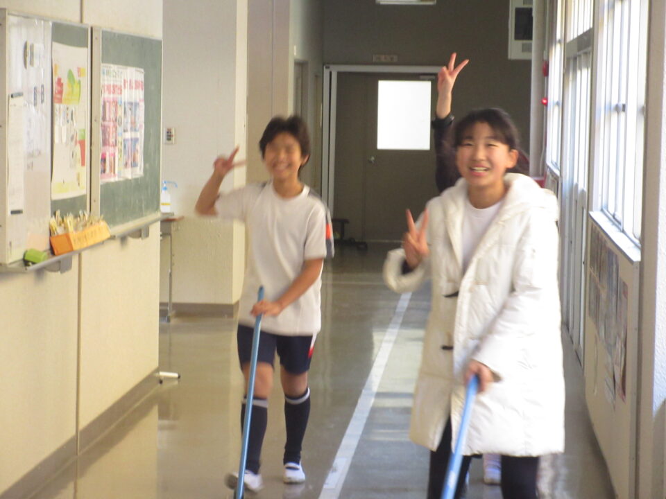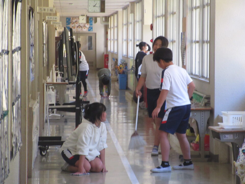 そうじの時間の様子です。普段の掃除場所とは違うのですが、掃き、拭きともがんばっていました。