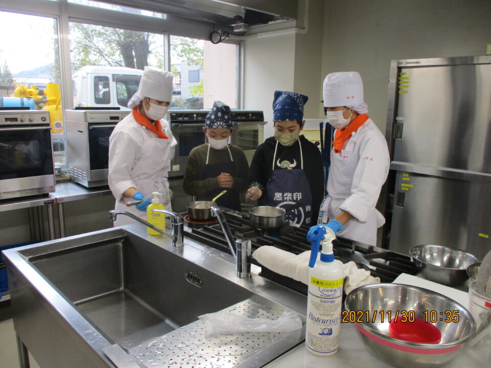 6年生 相可高校での調理実習体験