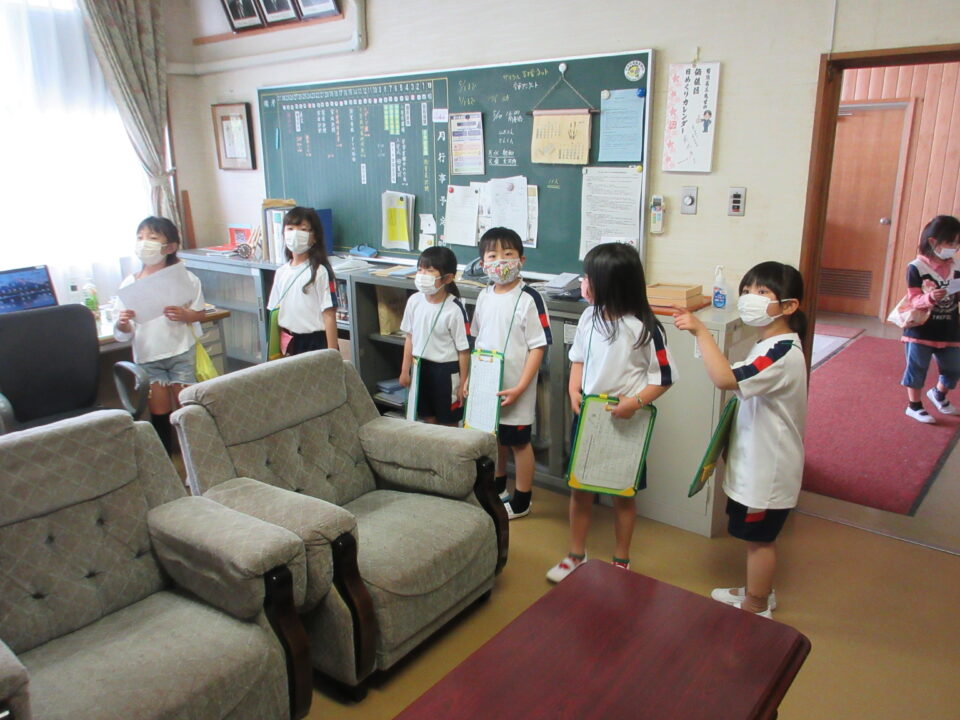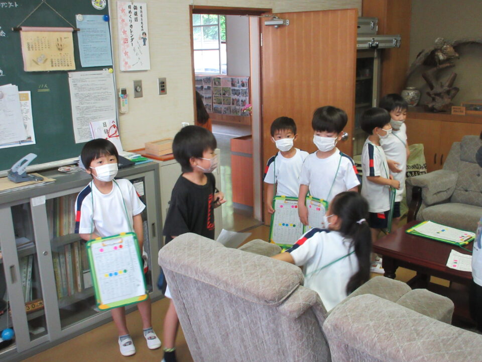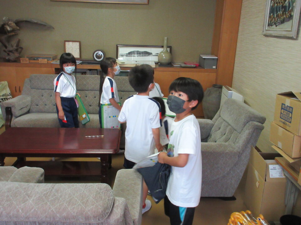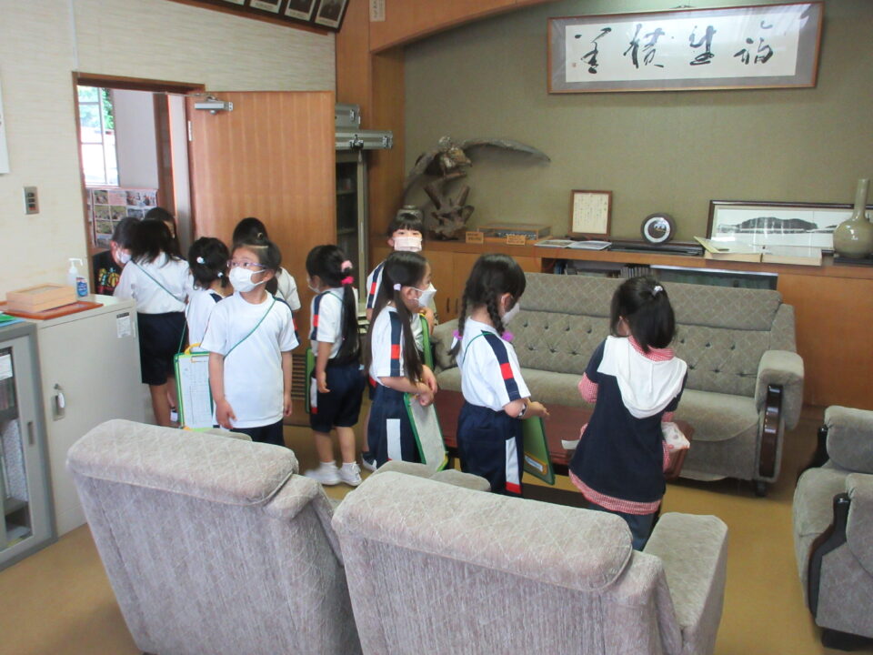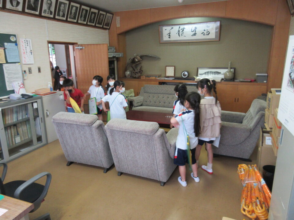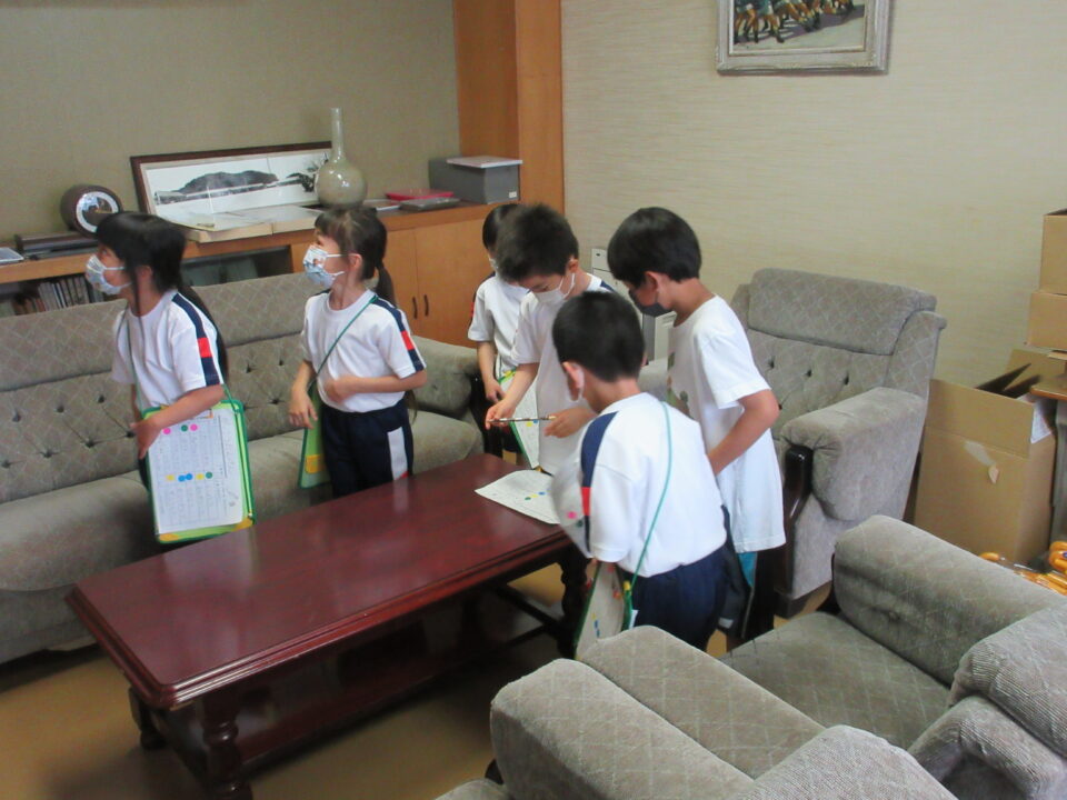 1年生に説明をしながら案内したり、シールを貼ったりする2年生。去年の同じ光景を思い浮かべると一段と頼もしくなった姿を見て、とても嬉しくなりました。校長室では、歴代の校長先生の写真の枚数を数えるミッションがあり、1年生のみんなは繰り返し数えていました。
