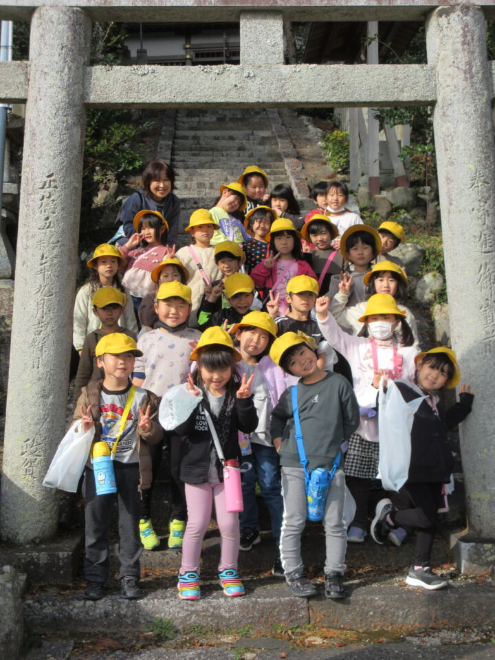 秋葉山へは、6月に出かけて以来、2回目の探検です。同じ場所でも周りは前回とは違う景色です。紅葉や落ち葉など、今の季節の様子を見て、感じてきました。伊佐和神社も訪問しました。楽しい集合写真を見ると、6月の時の写真と比べ、子どもたちの成長を改めて感じることができ、とても嬉しくなりました。