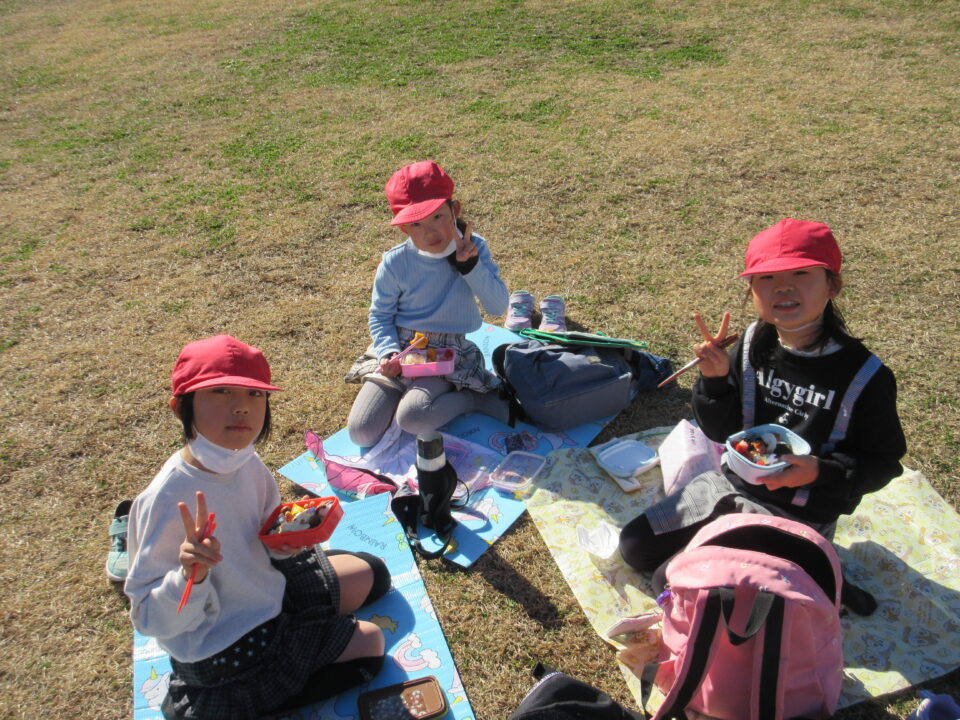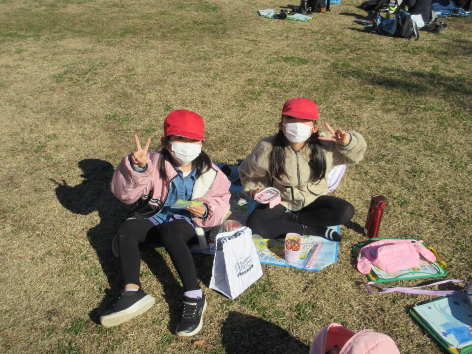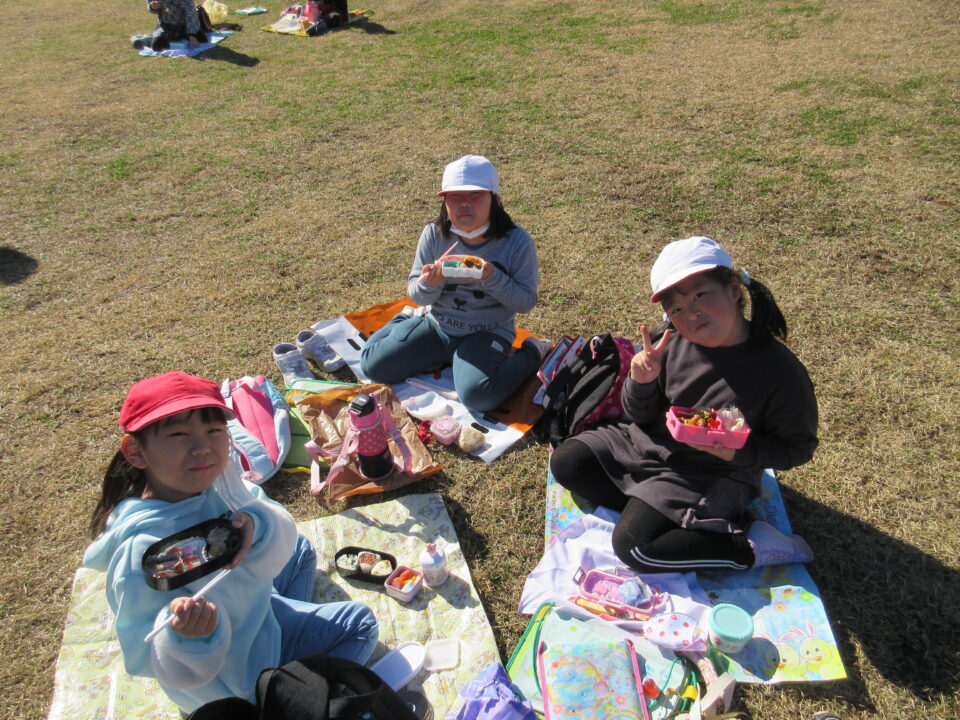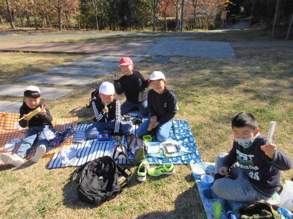 楽しい昼食とおやつタイムです。館内での昼食の予定でしたが、この時期にもかかわらず、暖かい天候に恵まれ博物館前の広場で楽しむことができました。