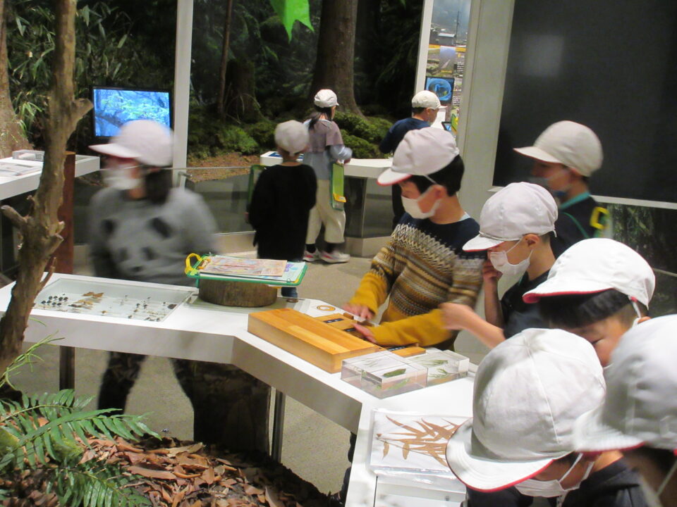 2年生が、これまで学習をしてきたユニバーサルデザインについてのお話を聞いたり、工夫された館内の案内をしてもらいました。また、館内の展示物を見学しました。