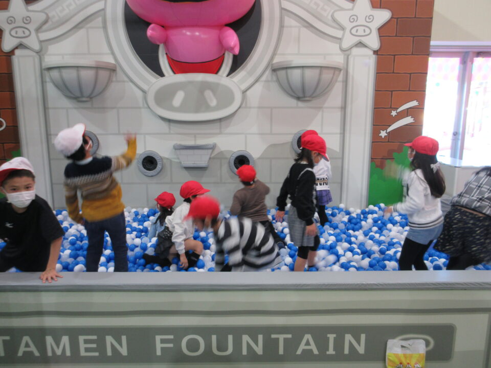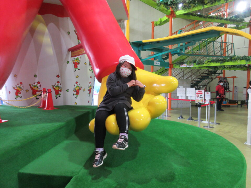 最後は、おやつカンパニーにある「おやつタウン」です。楽しい遊具や設備がいっぱいで、子どもたちは目いっぱい楽しんできました。