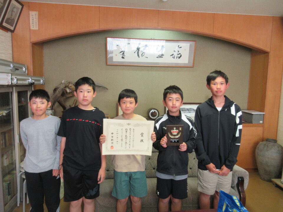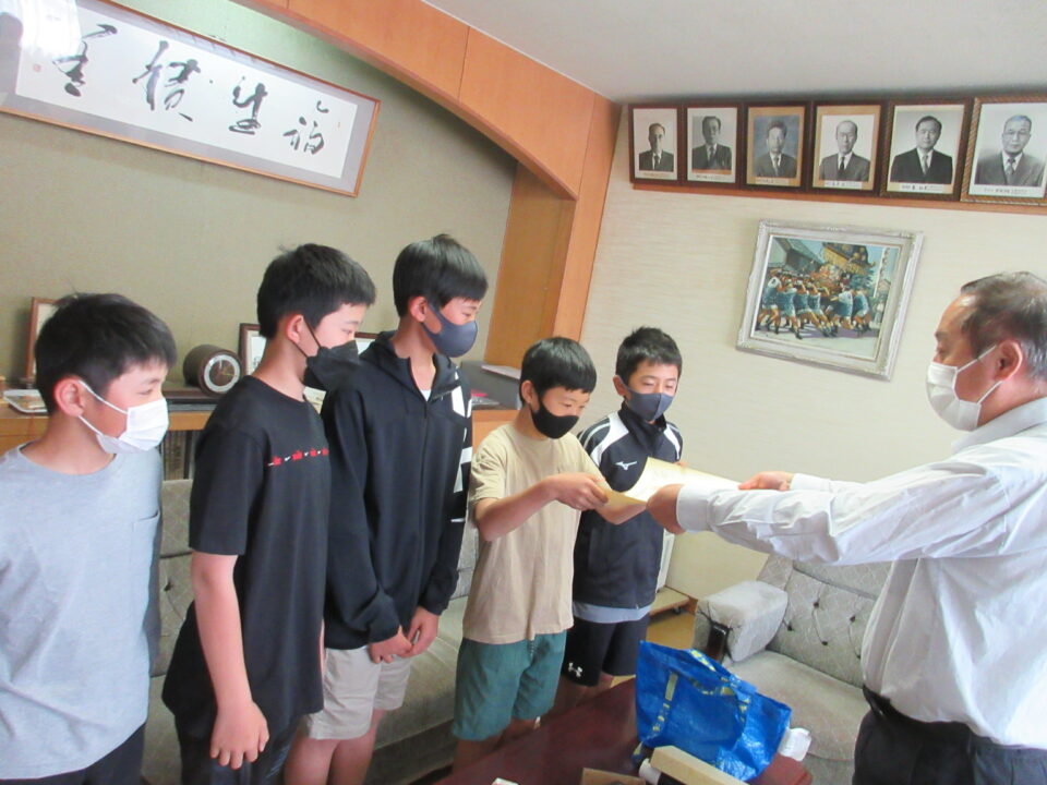 6年生の子どもたちと校長室でミニ表彰式をしました。少年団活動の表彰は、全校集会での実施はできませんが、校長室でのミニ表彰式等でもよければ、行いたいと考えています。よろしければ声をかけてください。